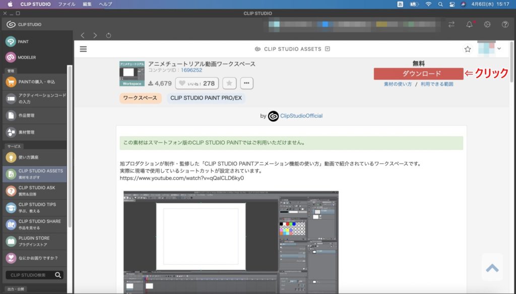 CLIP STUDIOのインストール手順はここでは割愛します。