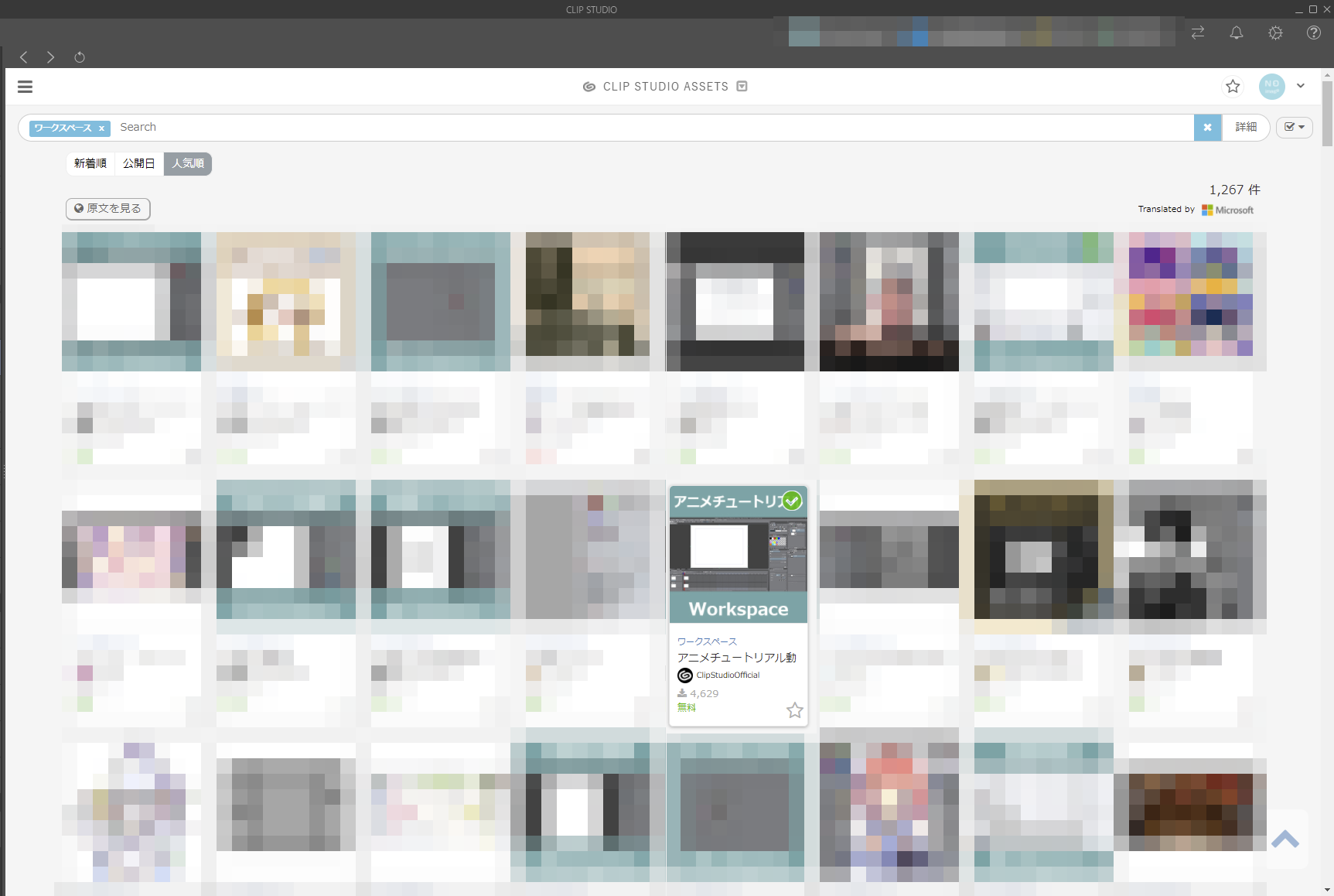 「CLIP STUDIO ASSETS」から「ワークスペース」を検索して、人気順のタブをクリックして下さい。