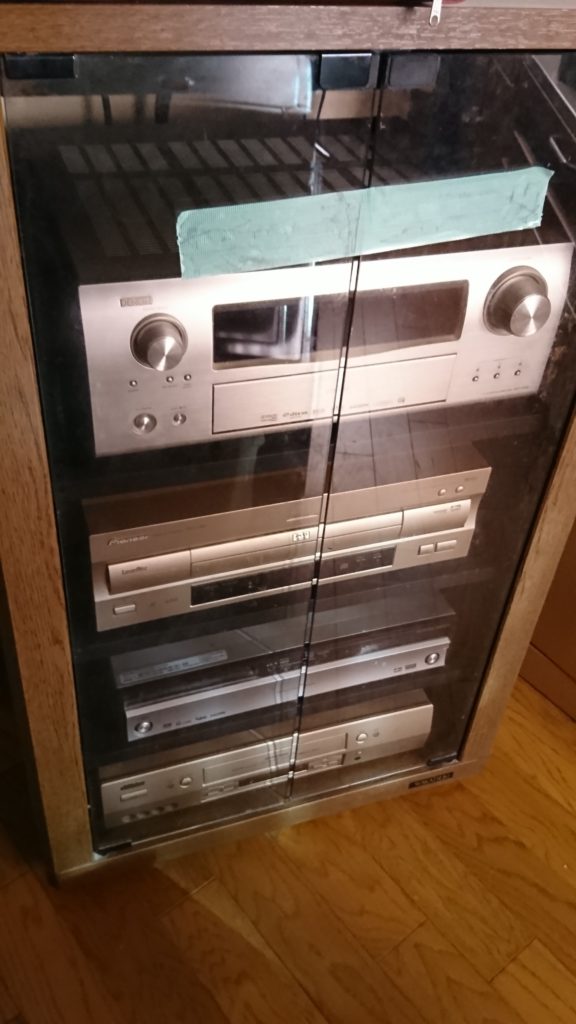 上から、AVアンプ(DENON製)、LD・DVDプレーヤー(pioneer製)、DVDレコーダー( pioneer製 )
