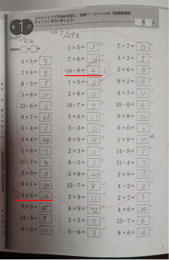 それよりも真ん中上にある「14-8」の答えが何故か「4」になっているのも、問題を再確認してもよく分かりません…😵