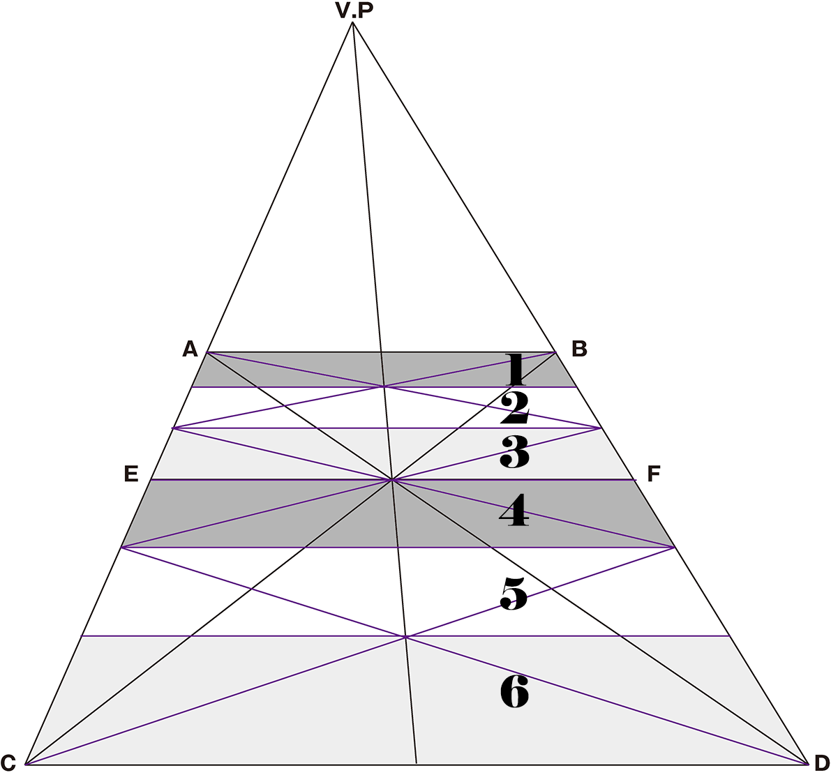 二分割からの応用で「正確な間隔」で三分割に切り分けていく方法を説明します。基本的な二分割表現から、違った工程の線を追加する事で三分割が出来ます。