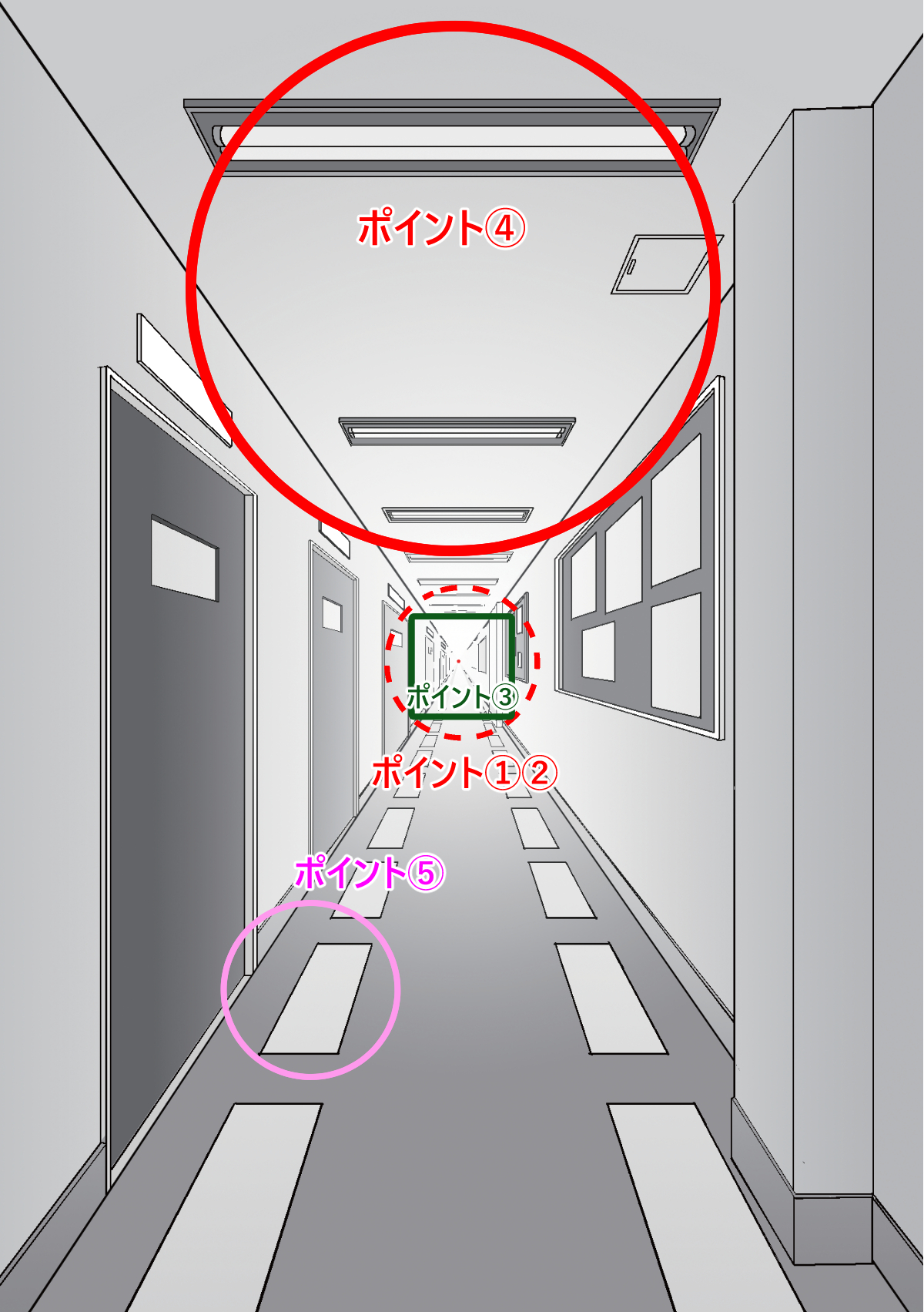 基準となる図形を分割する方法を「分割法」とし、パースに沿った均等に表現する窓や扉等に使われます。