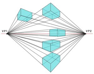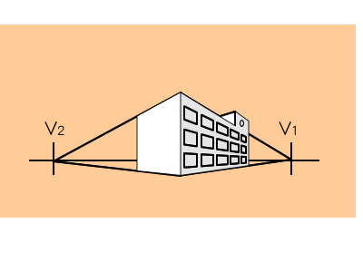 「二点透視図法」は、2つのV.P(消失点)を基にパース(遠近法)を表現する方法です。