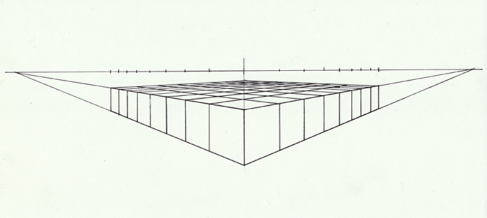 二点透視図法は、カメラアングルを固定した空間表現の作図法としてベストなモノですので、確かな技術として身に付けておく事で、表現者として確立する事が出来ますので、正しく身につけましょう。
