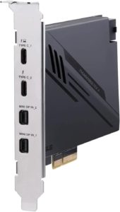 Type-Cディスプレイポート搭載のグラフィックボードは販売していますが、Thunderbolt3は拡張カードや外付けグラフィックボードとして販売しています。