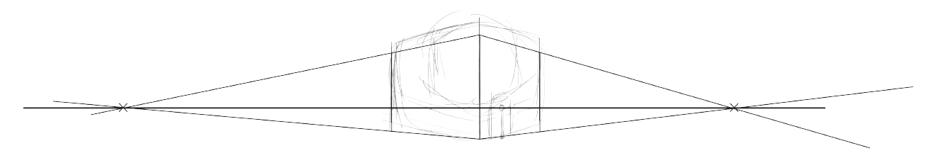 ここでE.L( アイレベル) を設定し、V.P( 消失点) が何処にあるかを割り出します。
