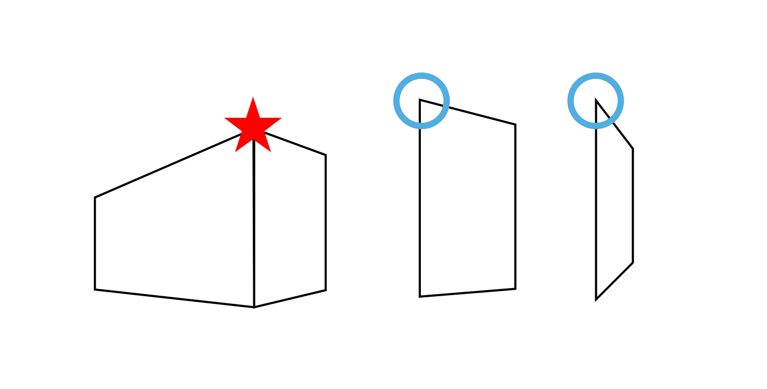 角度を狭めると鋭角的で狭い空間になります。逆に広げると…ゆったりとした空間が表現できます。
