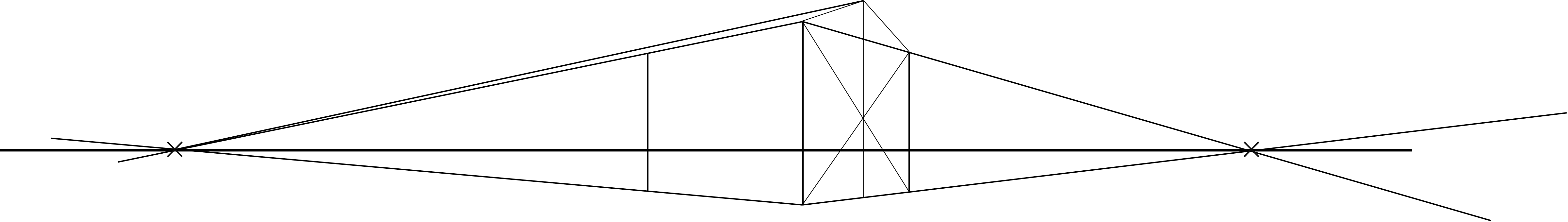 ここで交差したポイントが、V.P( 消失点) として設定されます。両端のV.Pを設定して下さい。これらのV.Pを基準に建物の下辺の地面と隣接する線が決定されますが、高さには注意が必要です。