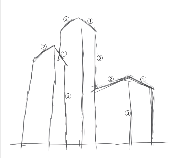 図では右側のビルの角の基準線を修正していますが、前工程での線よりは自然に見えると思います。